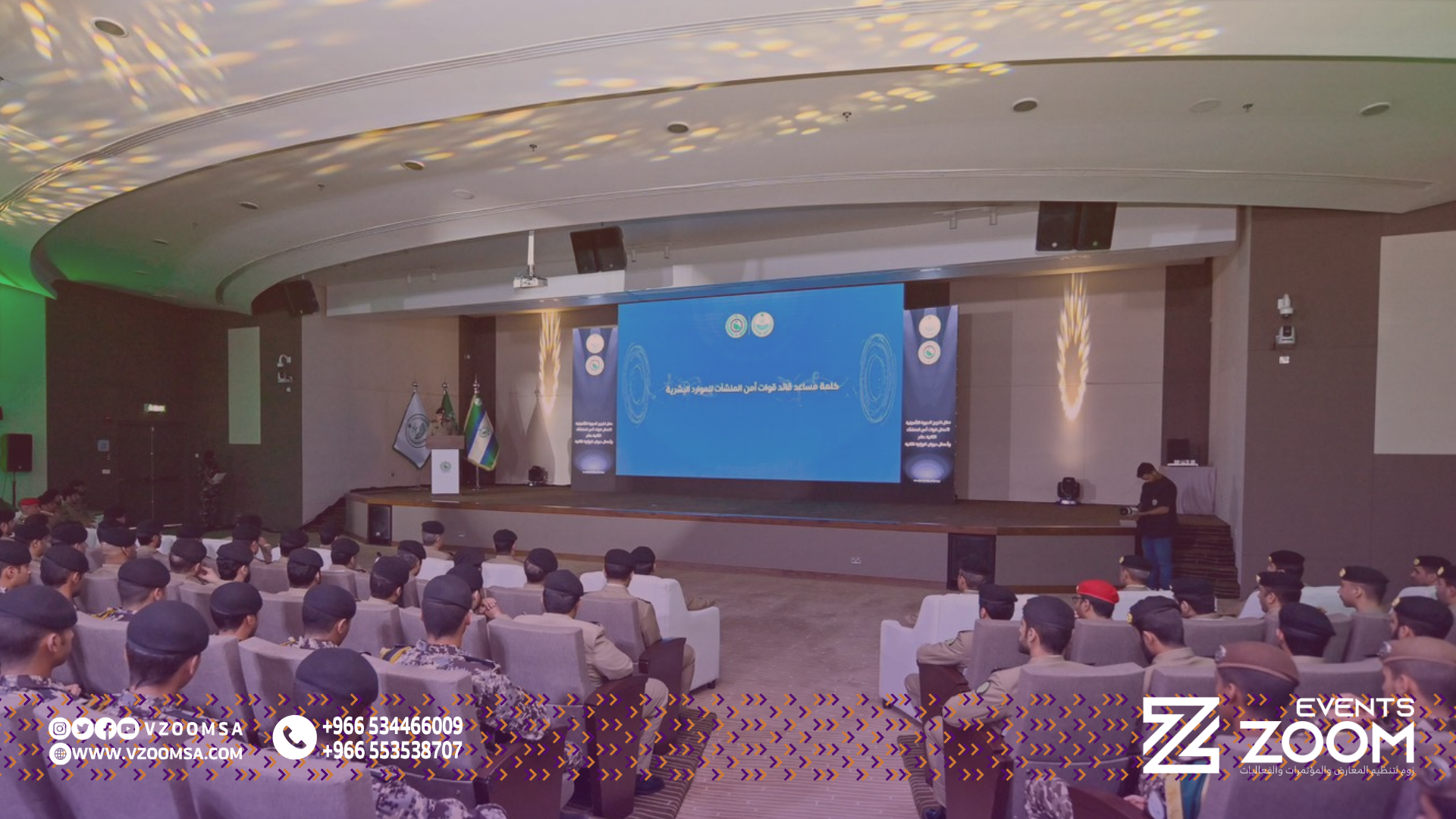 تشرفت زوم لتنظيم المعارض والمؤتمرات والفعاليات بتنظيم حفل تخريج المتدربين من الدورات التأهيلية لقوات أمن المنشات , حيث قامت زوم بتركيب شاشات ومجموعة من الإضاءات المختلفة وأنظمة الصوت المختلفة وتصميم وتجهيز قرعة البطولة الرياضية لعام 2025